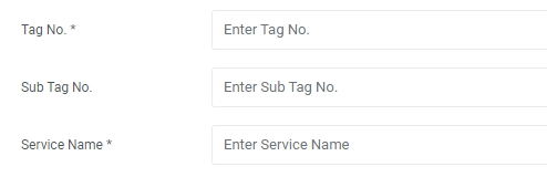 Input Tag No, Sub Tag No and Service Name. Tag No and Service Name are compulsory fields and will be used to idenitfy the equipment in M-DB.