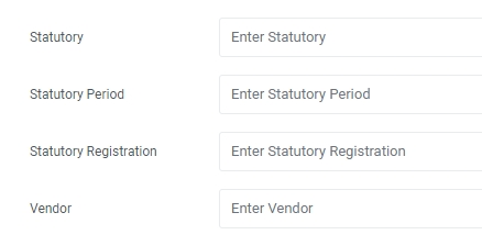 Input the Statutory, Period, Registration and Vendor if applicable, in the input fields provided.