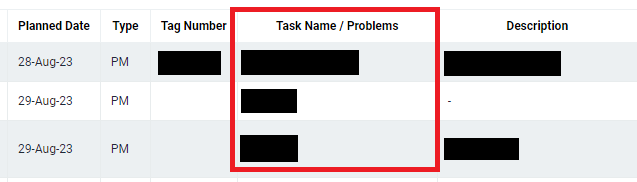 To view the detail of the Maintenance Task, you can click on the Task Name/Problems.