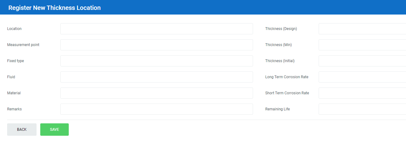 Allows user to add new Thickness Location of Piping in M-DB. Please note that Thickness data for Piping can be entered only after location is defined.