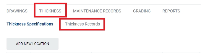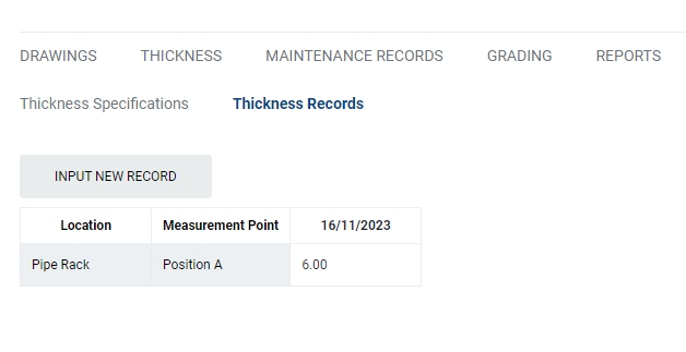 The past Thickness records will be displayed. To input new record, click on Input New Record