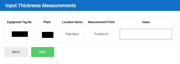 Input the Thickness data for the location and click Save to save the Thickness Record.