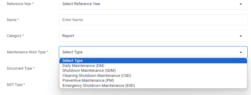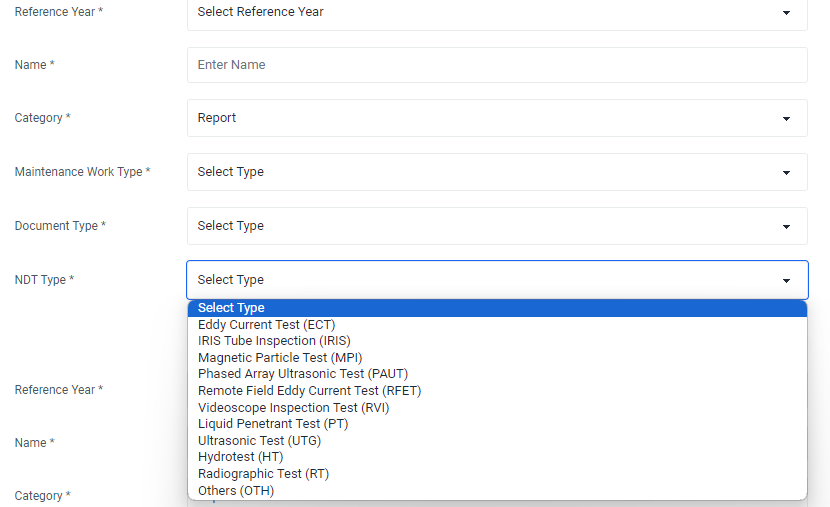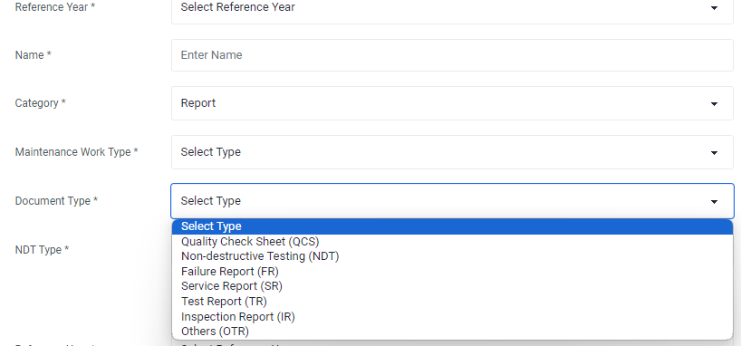 If the document type selected earlier is "NDT", please select the NDT Type . Otherwise this field will not appear.