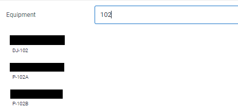 For Equipment related PM Master Plan, input the tag number that you are creating the PM Master Plan for. You can input a sub-string of the tag number instead of the full tag number, i.e. you can input 102 to locate a tag number P-102A. Hit "Enter" to invoke the search.