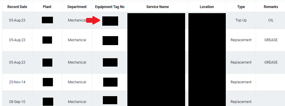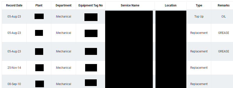 Allows user to search and retrieve Oil Analysis Record of an equipment. Please note that not all equipment have Oil Analysis Records.