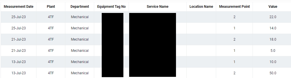 Allows user to search and retrieve Thickness Record of an equipment. Please note that not all equipment have Thickness Records.