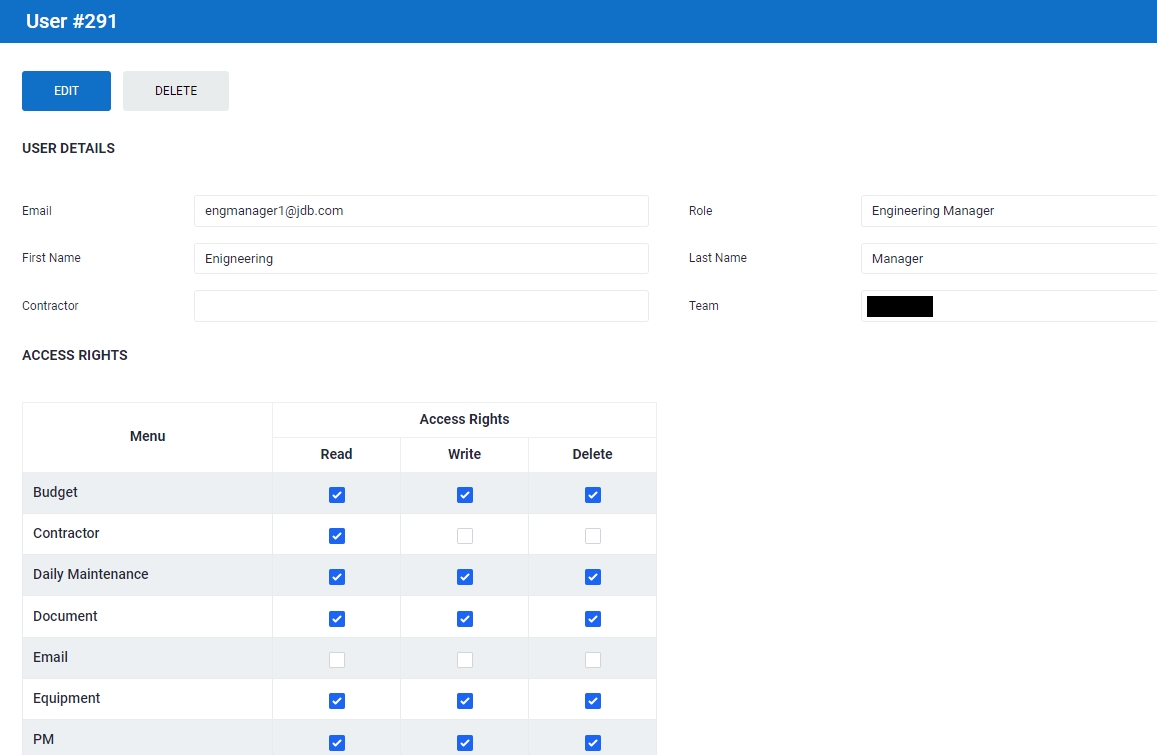 Click on Edit and choose the correct role for the user. Each role will have a pre-determined access rights. User can customise the access rights by ticking the corresponding boxes. Click save at the bottom to save the configuration.