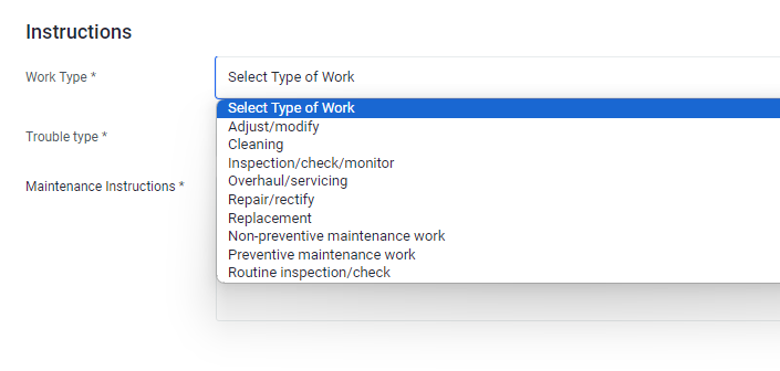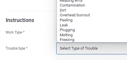 Input the Trouble Type of the Work Order from the dropdown list.