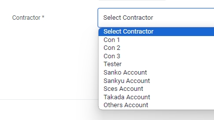 Select the Contractor you will be assigning the Work Order to from the drop down list. If there is a new Contractor that you like to add to the list, kindly approach your M-DB administrator for this request.