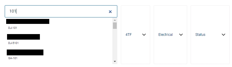 Select the correct plant information from the drop down list and input the tag number that you are searching for. You can input a sub-string of the tag number instead of the full tag number, i.e. you can input 101 to locate a tag number A-101. Hit "Enter" to invoke the search. You can filter your result by selecting the Status to "Registered".