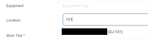 For Equipment related work order, input the tag number that you are searching for. You can input a sub-string of the tag number instead of the full tag number, i.e. you can input 101 to locate a tag number A-101. Hit "Enter" to invoke the search.
